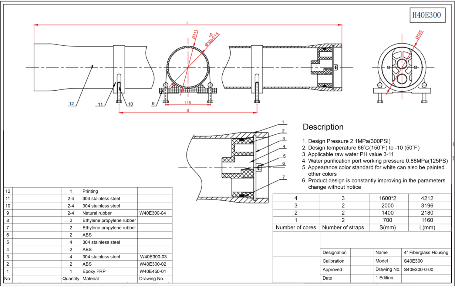 Fibreglass Epoxy Membrane Housing size:4040 - colour white, complete with end caps, seals and clamps and bolts.