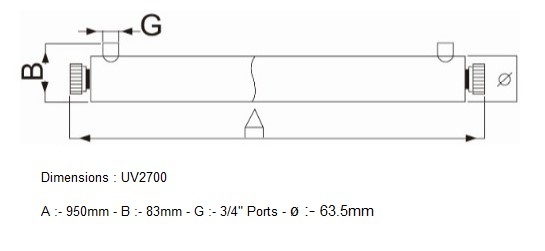 Complete Stainless Steel UV System for water treatment - 2700 Litres per Hour (45 Lts. Per Min.)